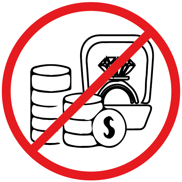 Contanti, assegni, carte di credito attive, documenti, cambiali, monete, monete contraffatte, monete da collezione, assegni, valuta, azioni. Opere d'arte o beni artistici senza nulla osta delle belle arti, gioielli, pietre preziose, metalli preziosi o vere perle, oro fino. Oggetti d’antiquariato.